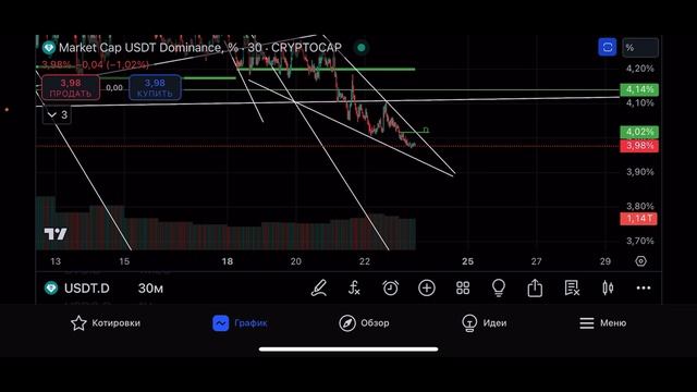 ВНИМАНИЕ НА USDT ДОМИНАЦИЮ! ОЧЕНЬ ВАЖНО! P2P НА BingX ТЕХ АНАЛИЗ ETH USDT APEX WLD MANTRA - видео