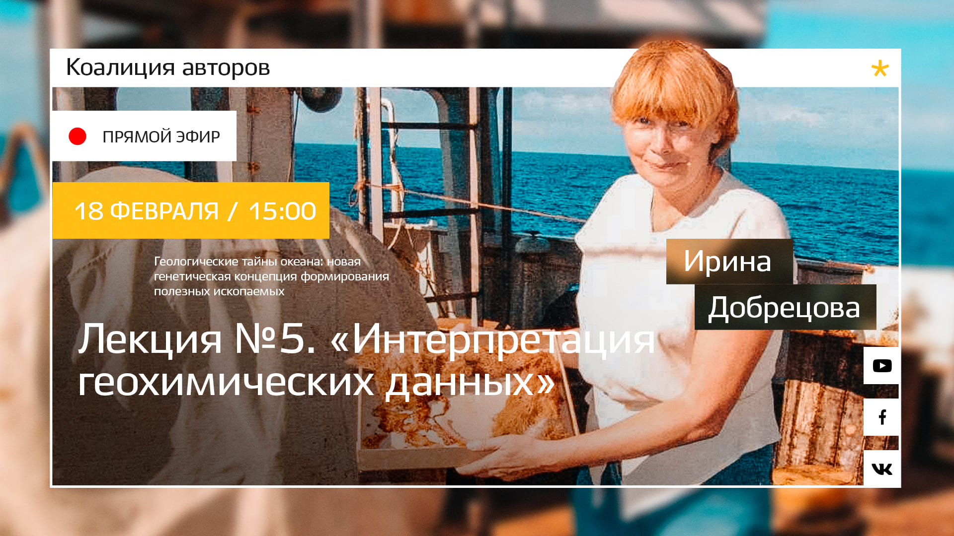 Пятая лекция из серии «Геологические тайны океана: новая генетическая концепция формирования полезных ископаемых». Ведущий геолог «ПМГРЭ» и эксперт Коалиции авторов Росгео Ирина Добрецова расскажет об интерпретации геохимических данных, почему важно изучать сами образцы, их форму выделений, структуру и текстуру.